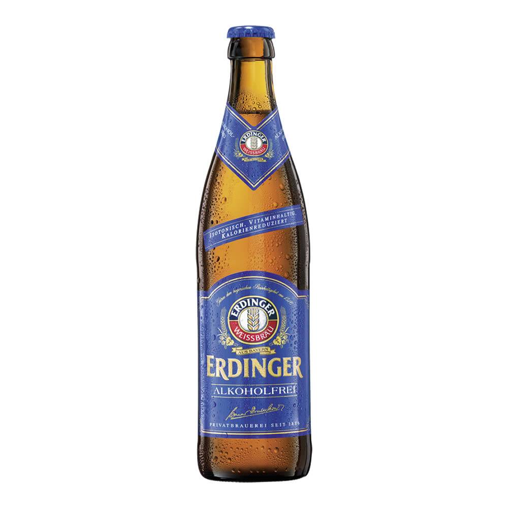 Beerpack de 12 cervezas alemana Erdinger Sin Alcohol. Aroma dulce, a pan fresco con notas suaves a lúpulo. Ligera y fresca con fuertes sabores a caramelo y cereales tostados. 0.5% de alcohol. Cerveza de Alemania.