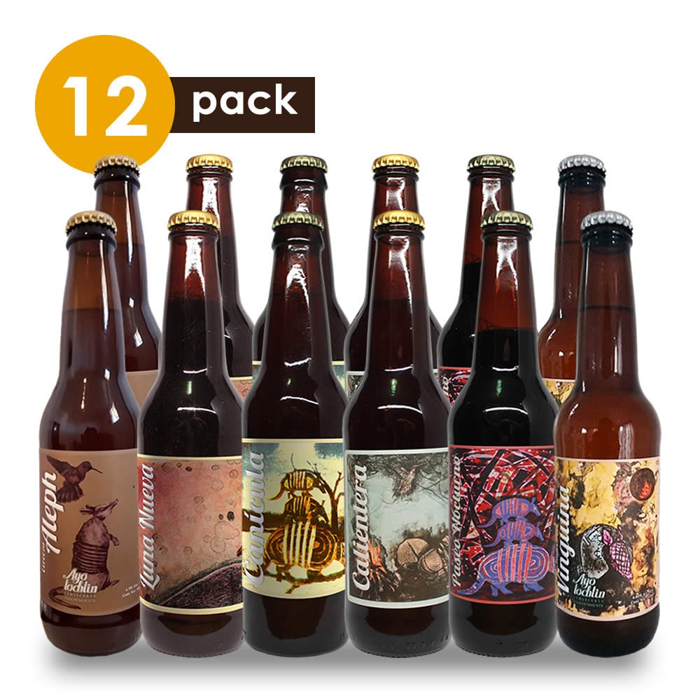 Beerpack de 12 cervezas artesanales Ayotochtin. Selección de cervezas para disfrutar y compartir: Light, Lager, IPA y Blonde Ale.