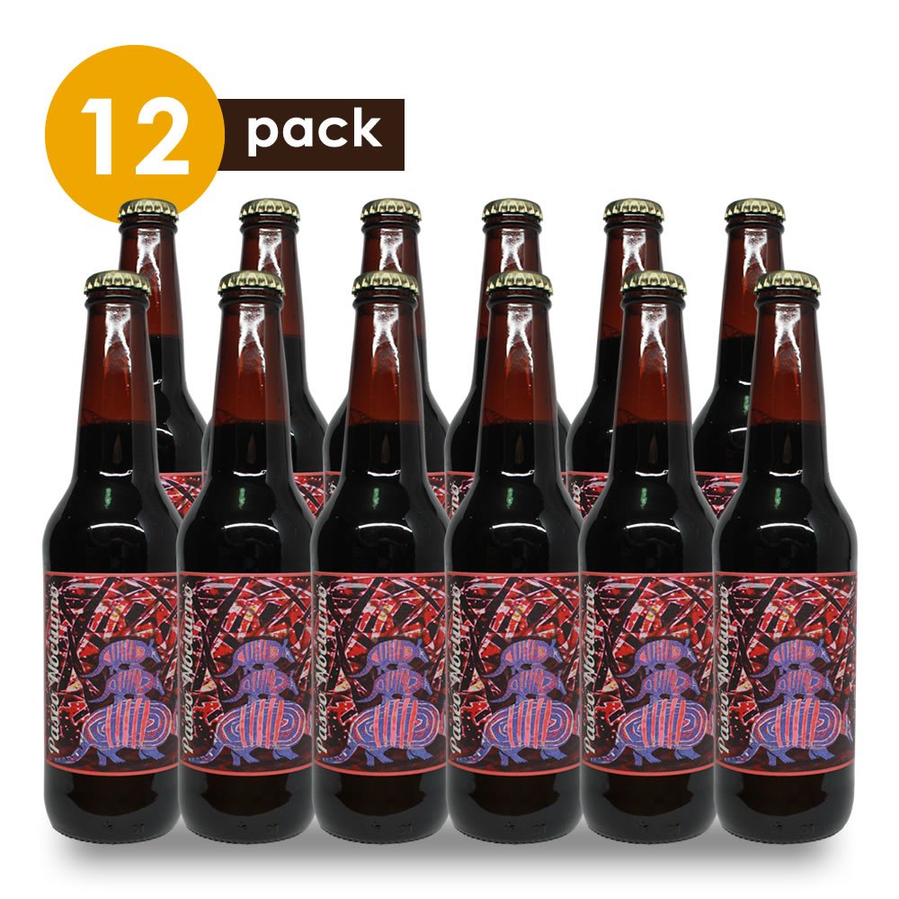 Beerpack de 12 cervezas artesanales Ayotochtin Paseo Nocturno. Paseo nocturno es una cerveza fresca, intensamente saborizada, con profundos sabores a frutos negros o secos y un final cálido y agridulce, con cantidades variables de granos tostados, maltosidad, ésteres frutales, lúpulos y alcohol. El carácter a malta tostada puede adquirir tonos ligeros a moderadamente fuertes, a café y chocolate oscuro. Es de color oscuro marrón-rojizo y opacas, de espuma color canela profundo a marrón oscuro.