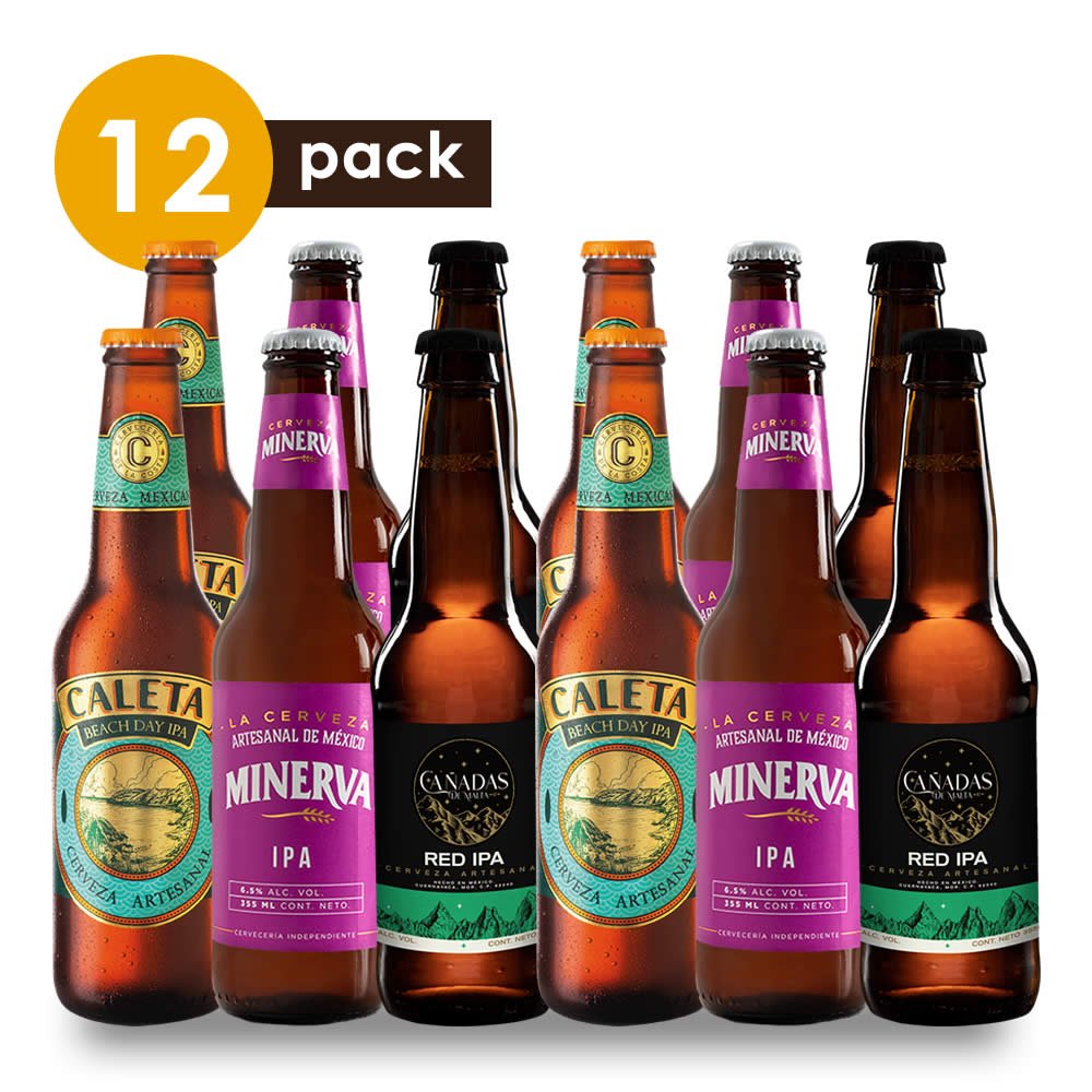 La cerveza artesanal IPA, se caracteriza por su alto nivel de amargor y alcohol. Su color ámbar y su balance entre el amargor, el tono dulce y maltoso es lo que define a este estilo. En boca se pueden percibir notas a maltas caramelizadas y amargor que persisten al final del trago. El estilo IPA es originario de Inglaterra, actualmente diversas cerveceras mexicanas lo producen. El pack contiene variedad de cervezas estilo India Pale Ale. 7,8% de alcohol. Cerveza artesanal hecha en México.